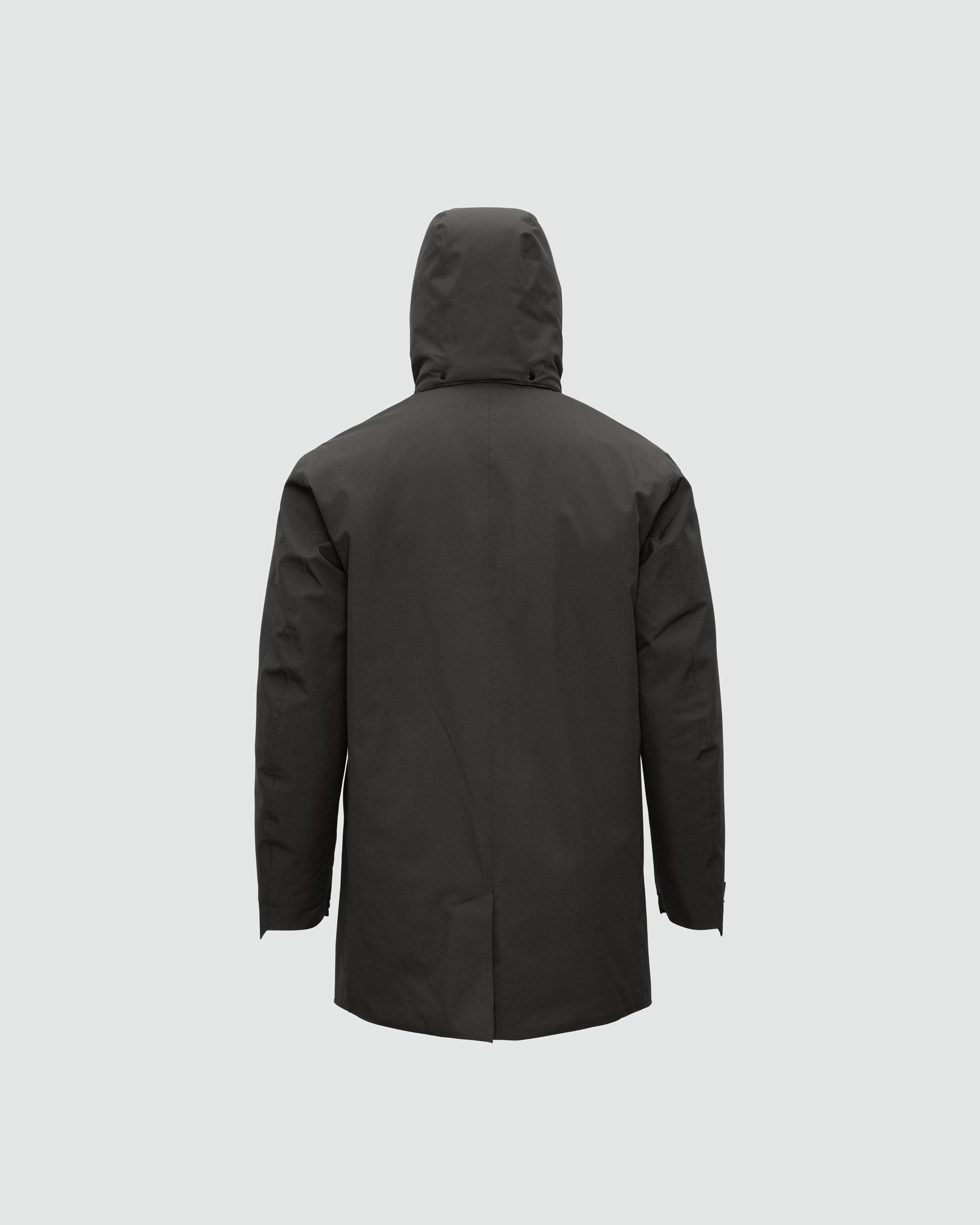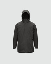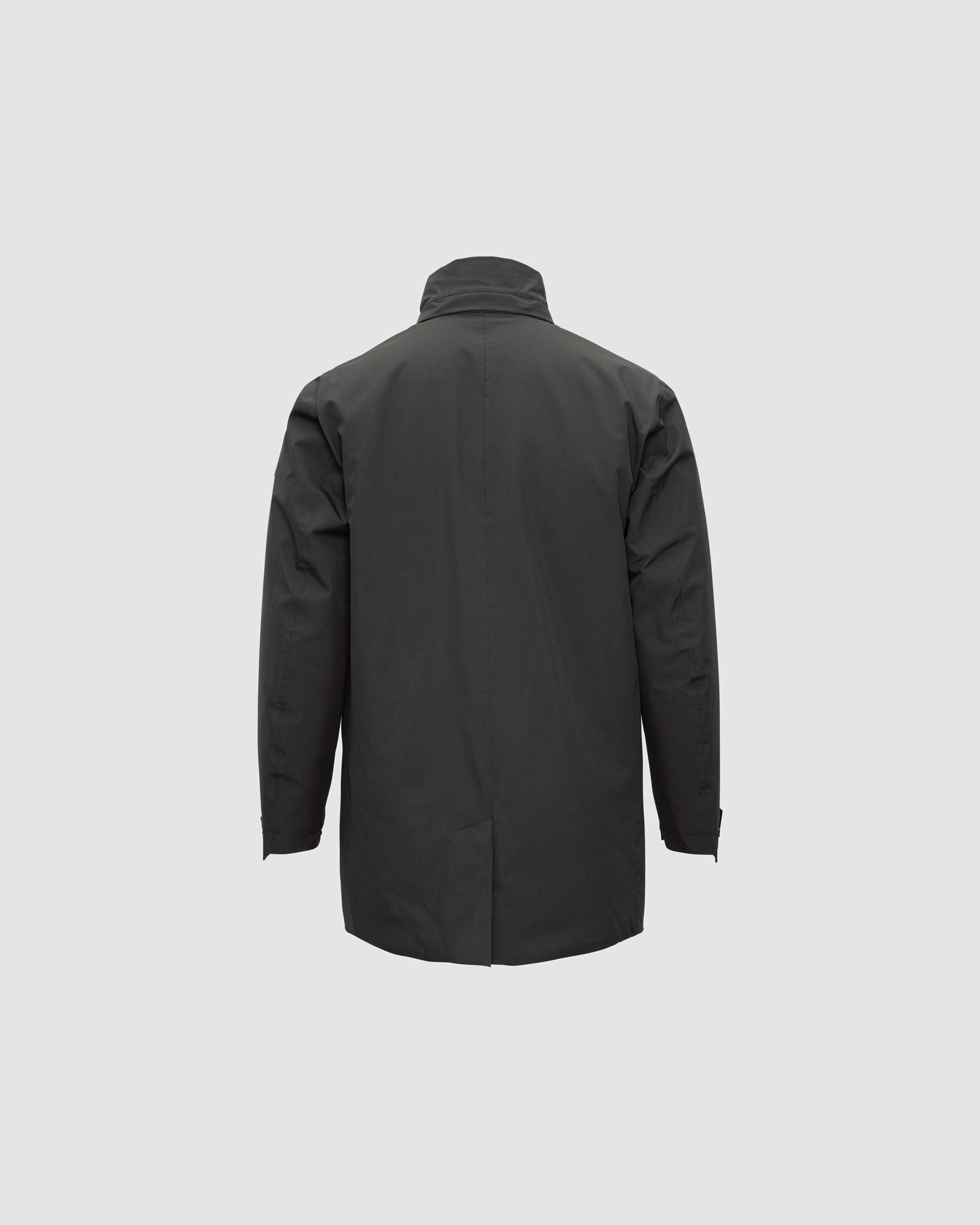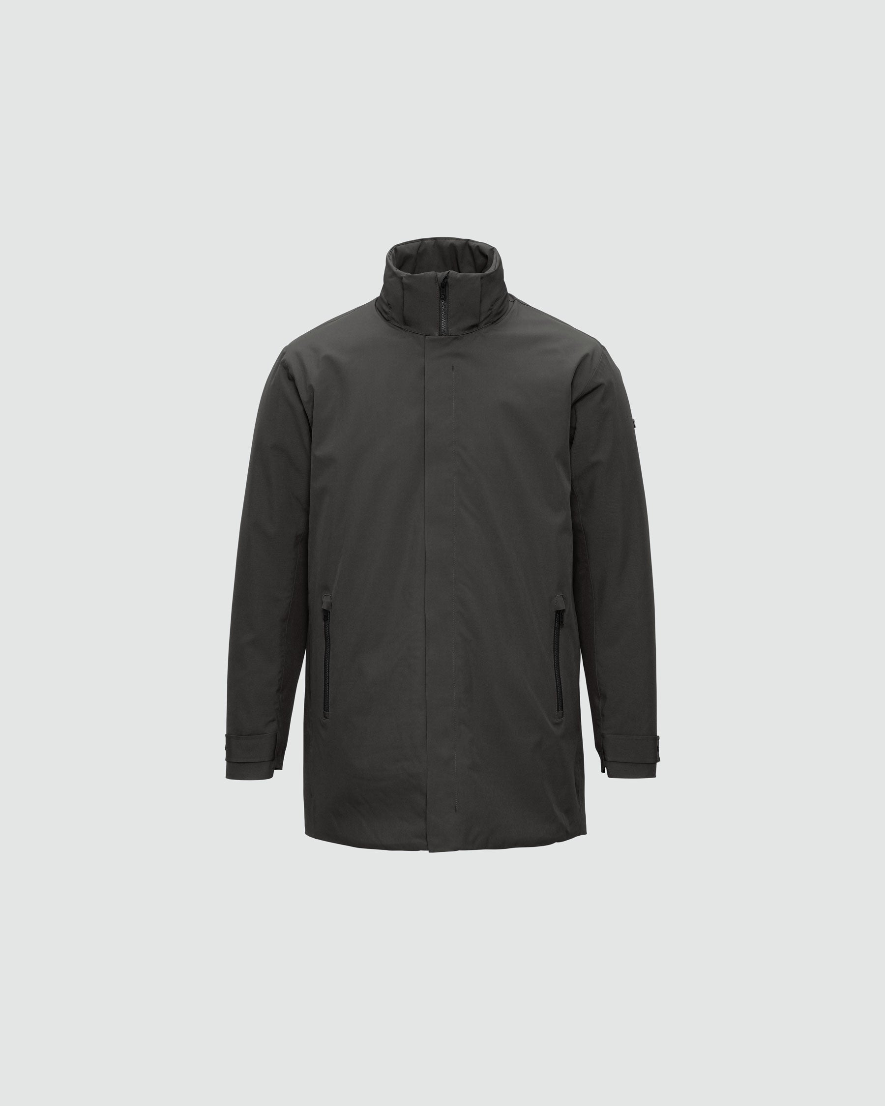 A waterproof, insulated winter business coat with clean, refined lines.