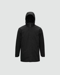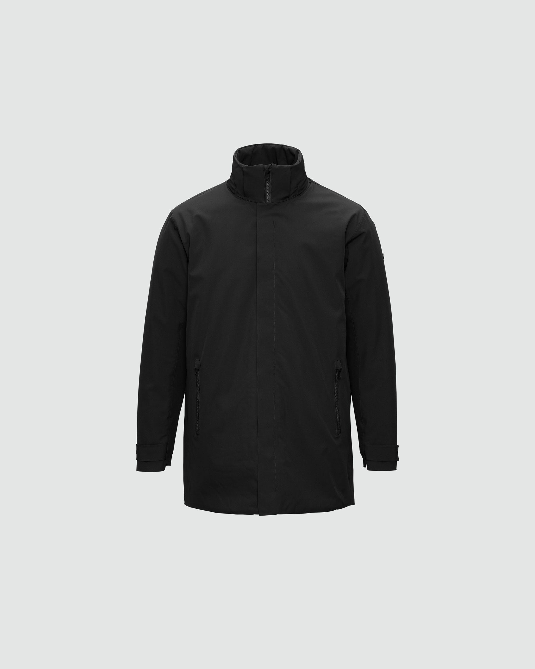 A waterproof, insulated winter business coat with clean, refined lines.