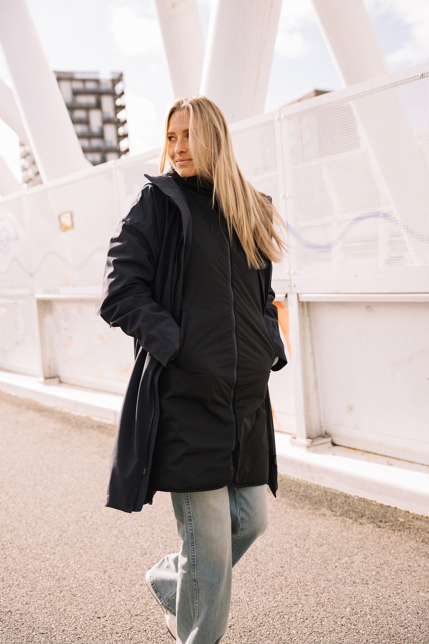 The Aurora coat combines modern elegance with advanced functionality, designed to seamlessly adapt to varying weather conditions and style preferences. This 3-in-1 coat features a versatile system where the inner jacket and outer shell can be worn individually or zipped together, providing flexibility for diverse temperatures and occasions. Inspired by Scandinavian architecture, Aurora's clean, symmetrical exterior conceals a host of technical features that make it a standout choice for year-round wear.