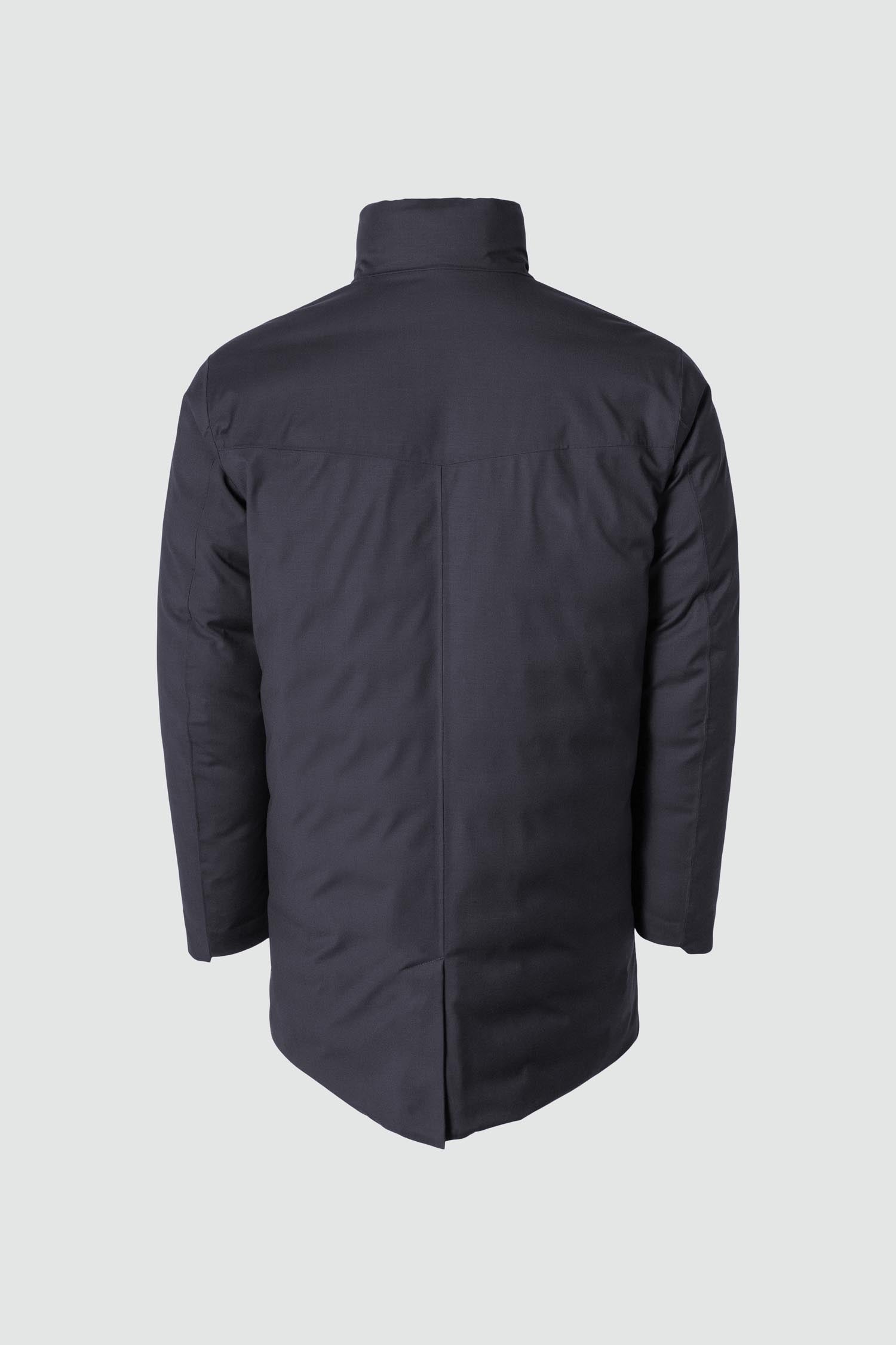 The Axis coat represents a sophisticated evolution of the classic Town, merging Italian craftsmanship with Scandinavian functionality. Crafted from 100% waterproof Italian wool by Loro Piana, a name synonymous with luxury and quality, Axis delivers a refined look suitable for both formal and casual settings. Its fitted silhouette, combined with a lightweight design, ensures you maintain a polished appearance while staying comfortable and warm. Axis is insulated with 90/10 down, which is protected by our new superlight (17 grams per square meter) ripstop fabric.