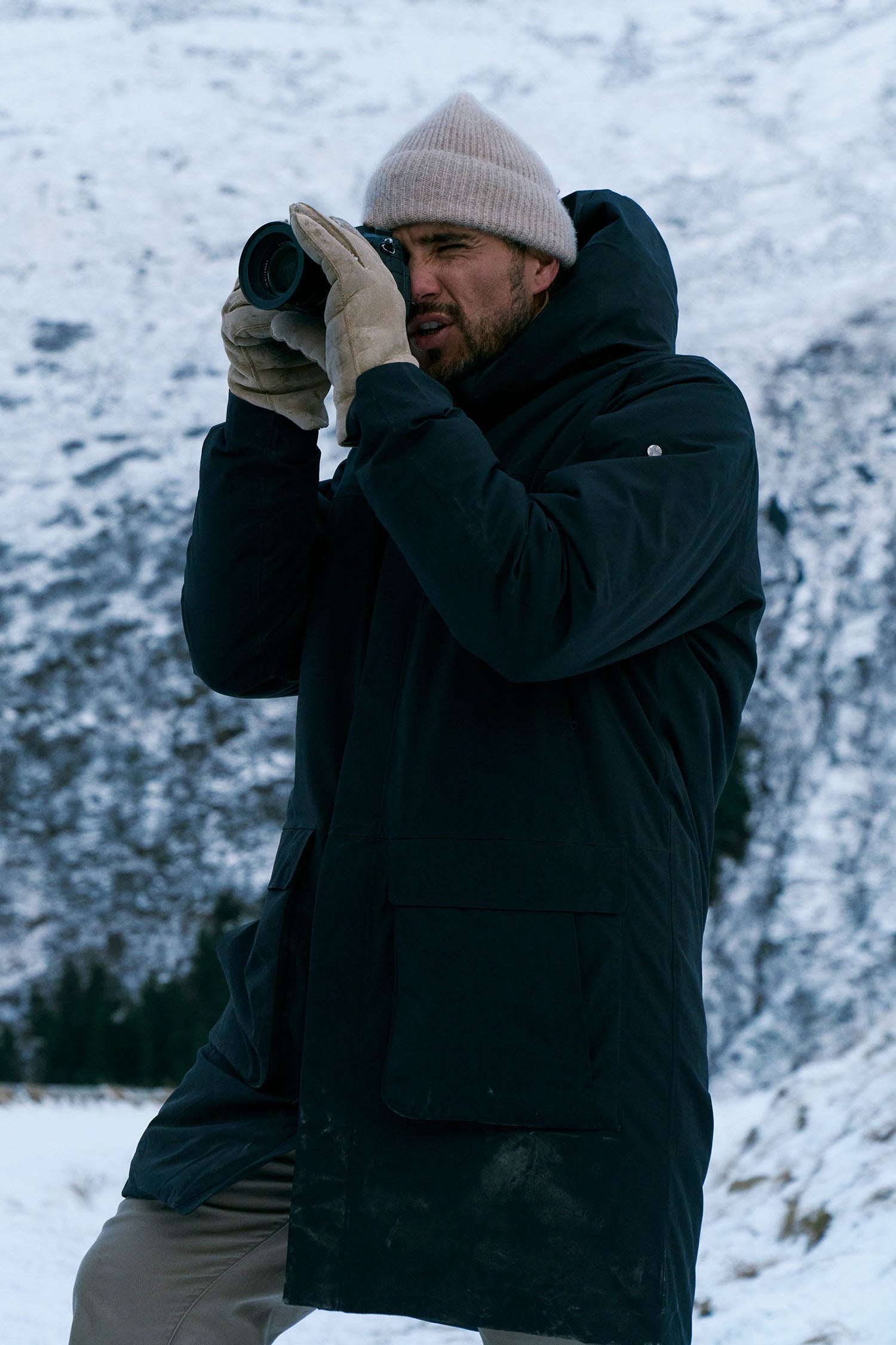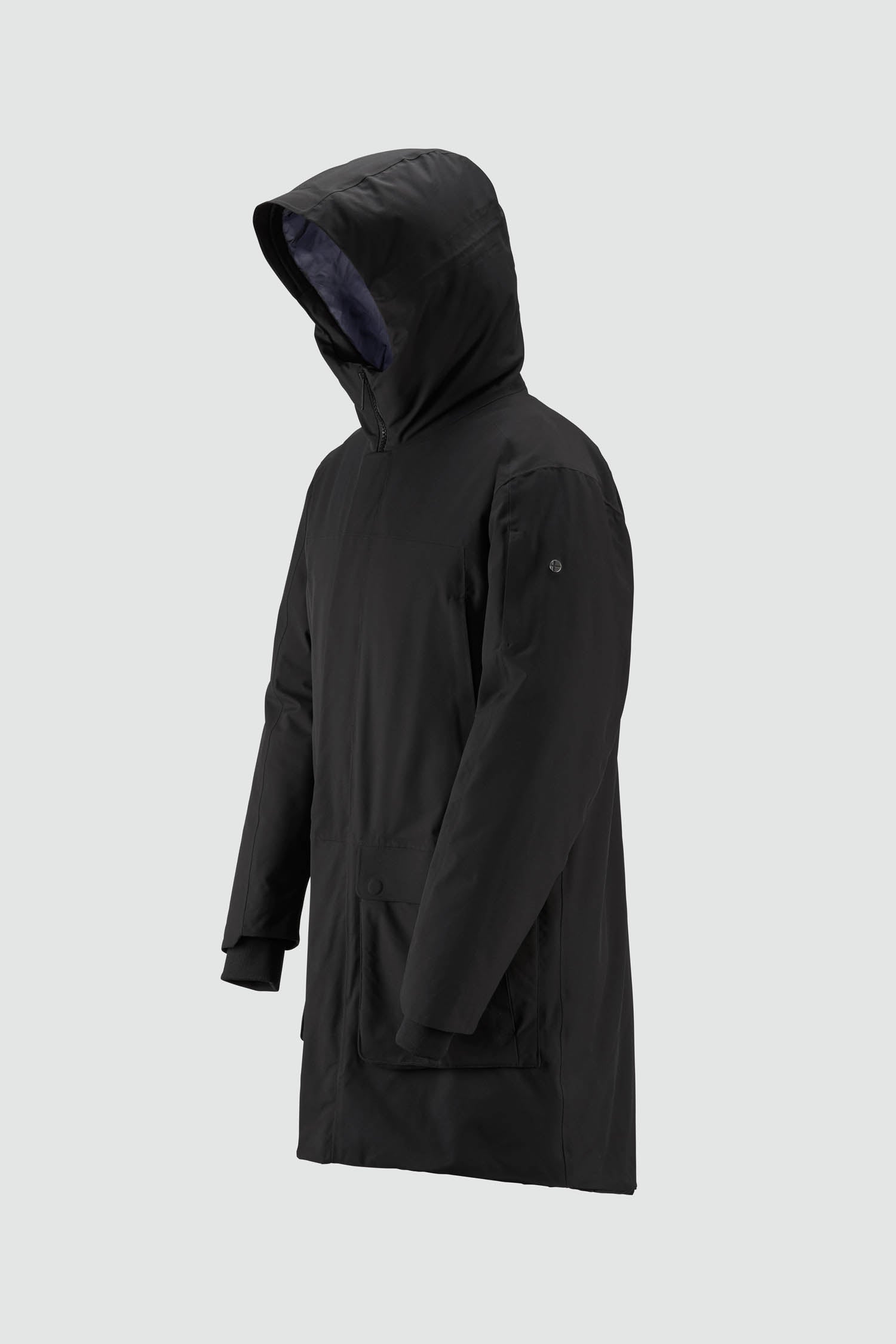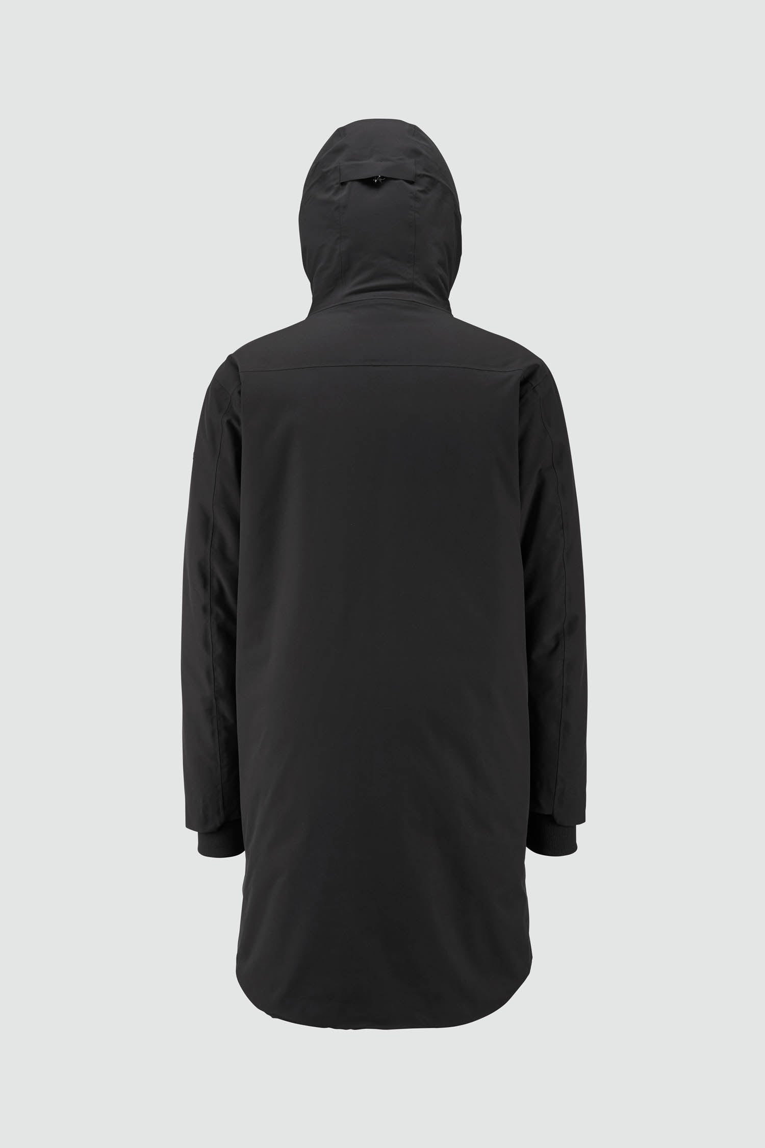 Guard II is a Fitted coat, meaning that it is designed to follow the body's natural lines without tapering. Fitted is a versatile shape that feels slightly narrower than a regular fit but with more room than a slim fit.