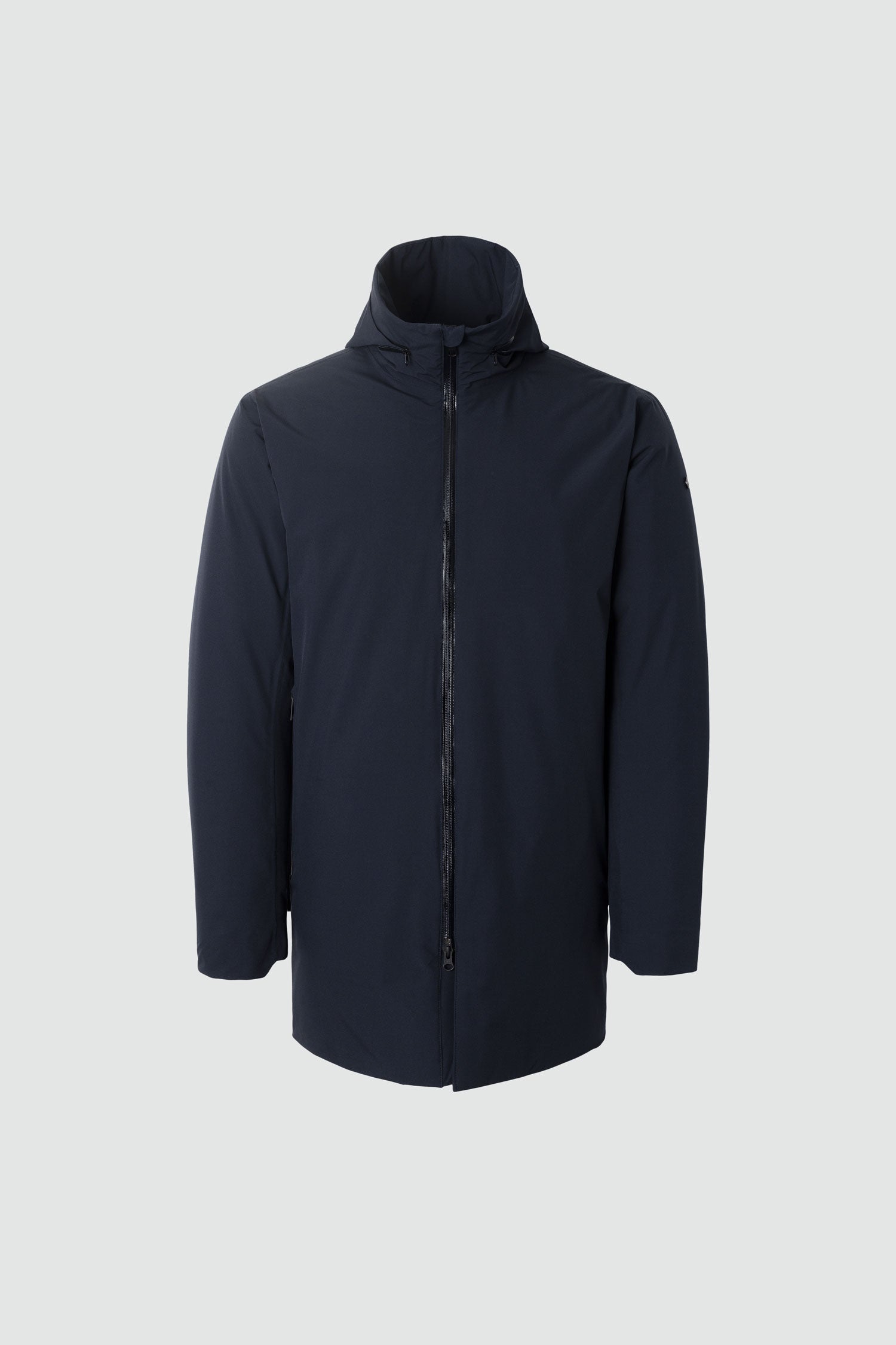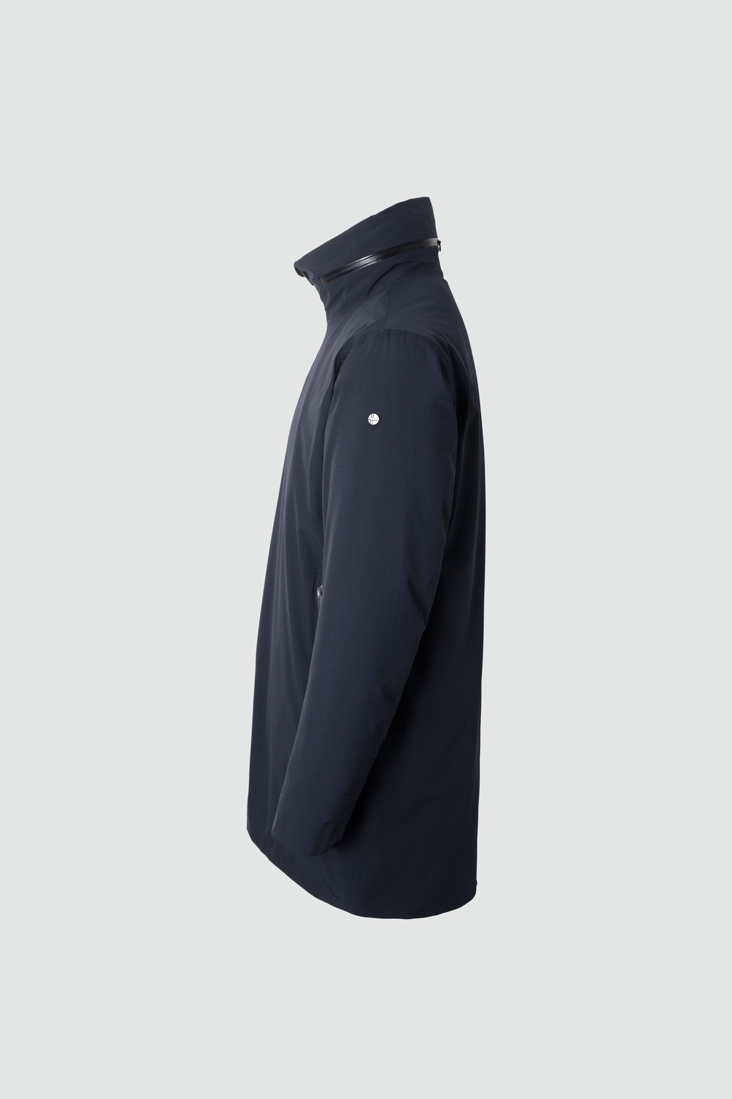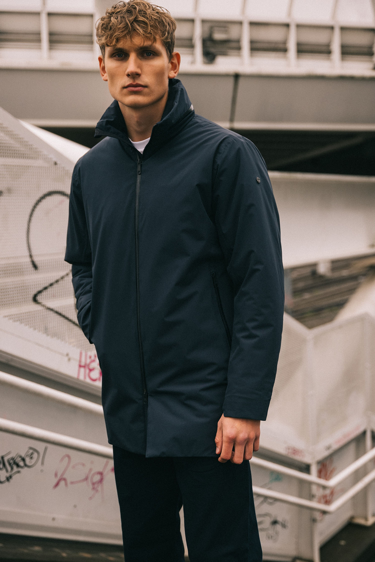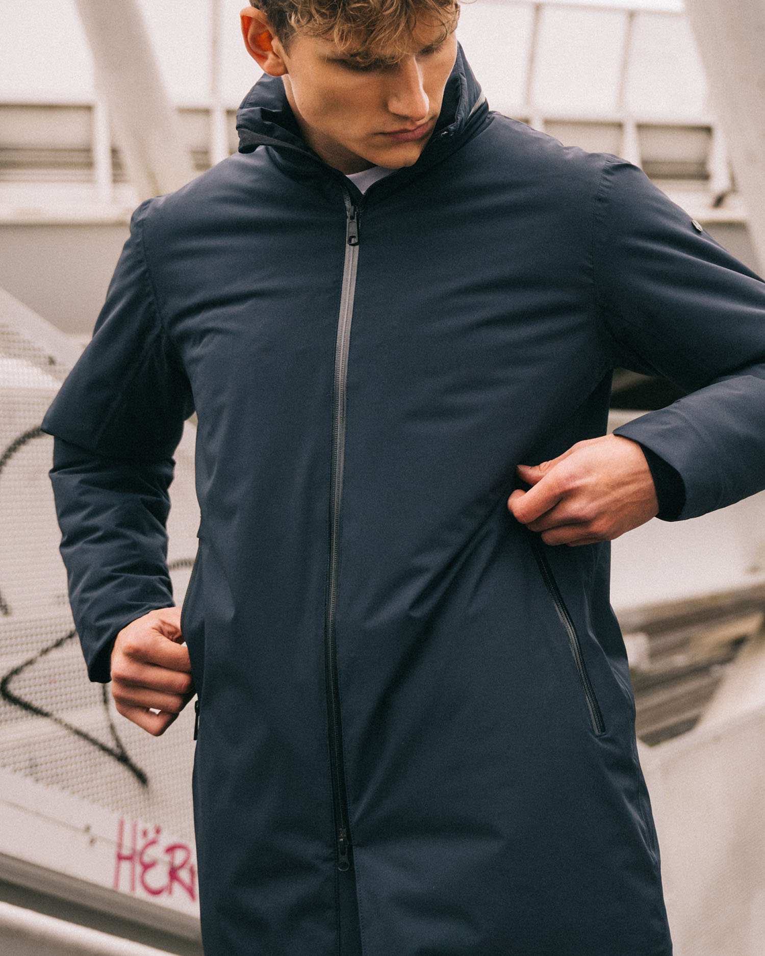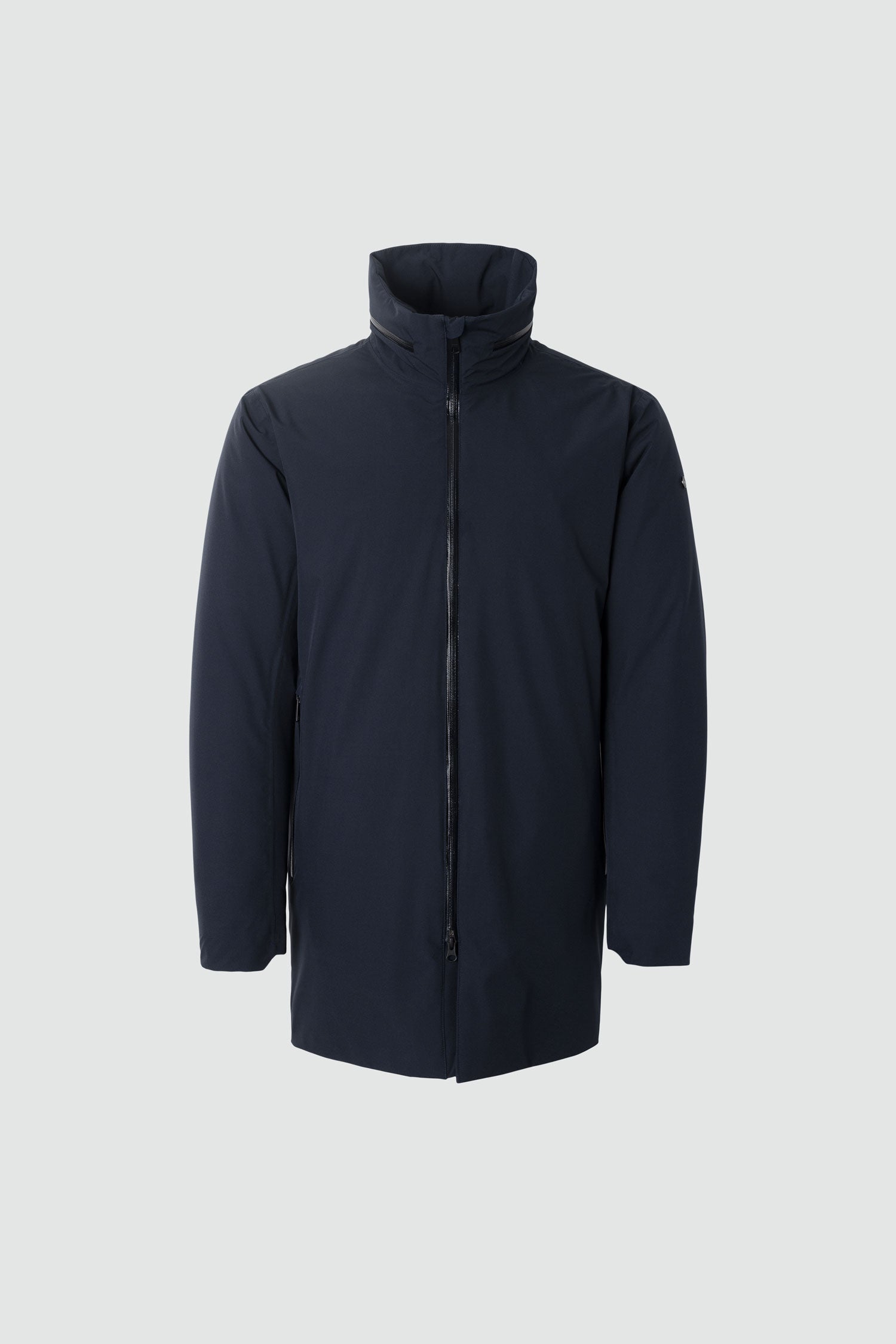 L.T. is a lightweight technical coat designed for a sleek, tailored silhouette, blending minimalist design with exceptional functionality. This versatile coat is ideal for both formal and casual settings, providing reliable protection and style. L.T. features RDS-certified down insulation in the body, complemented by Thinsulate synthetic insulation in the collar and sleeves for enhanced comfort and warmth.
