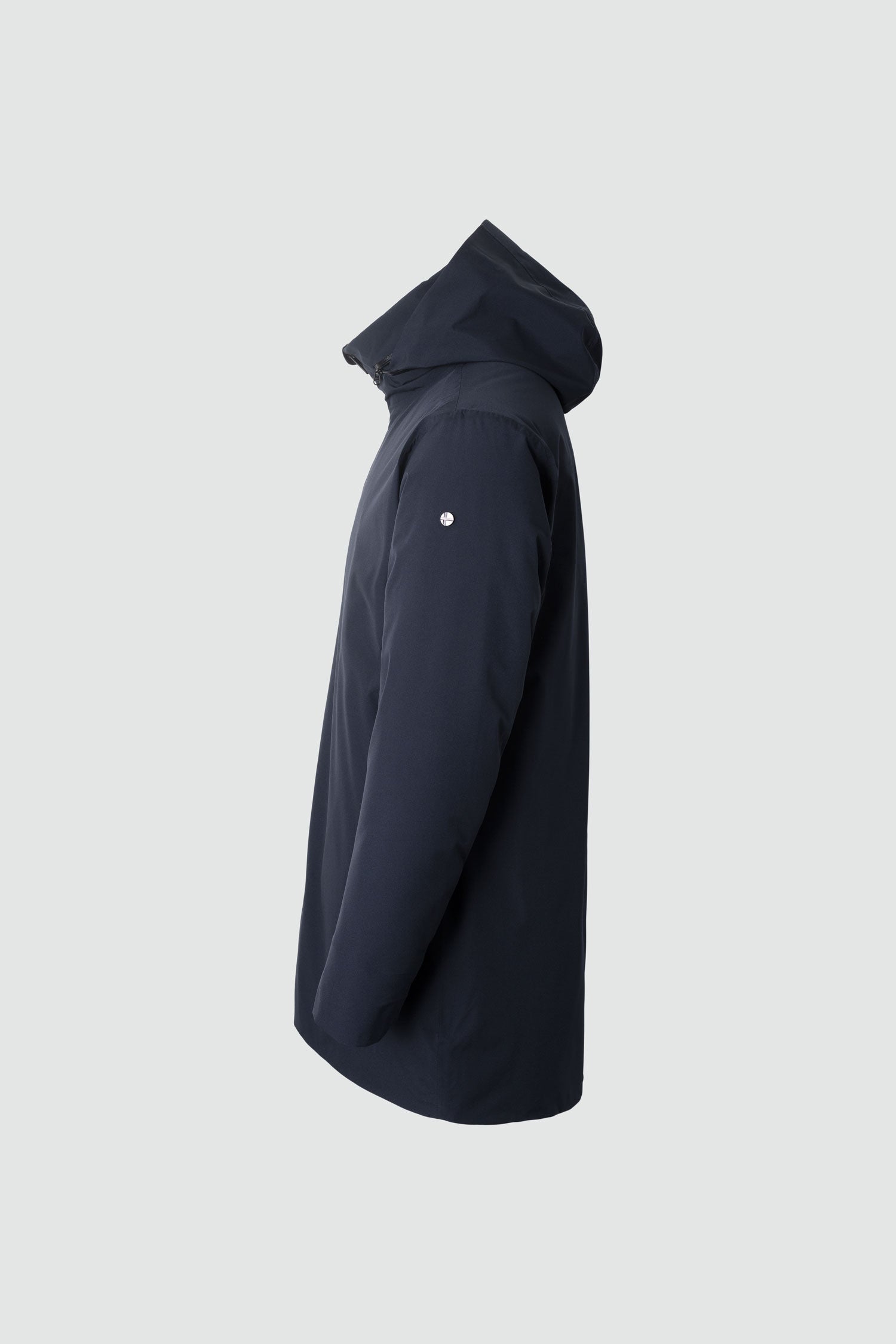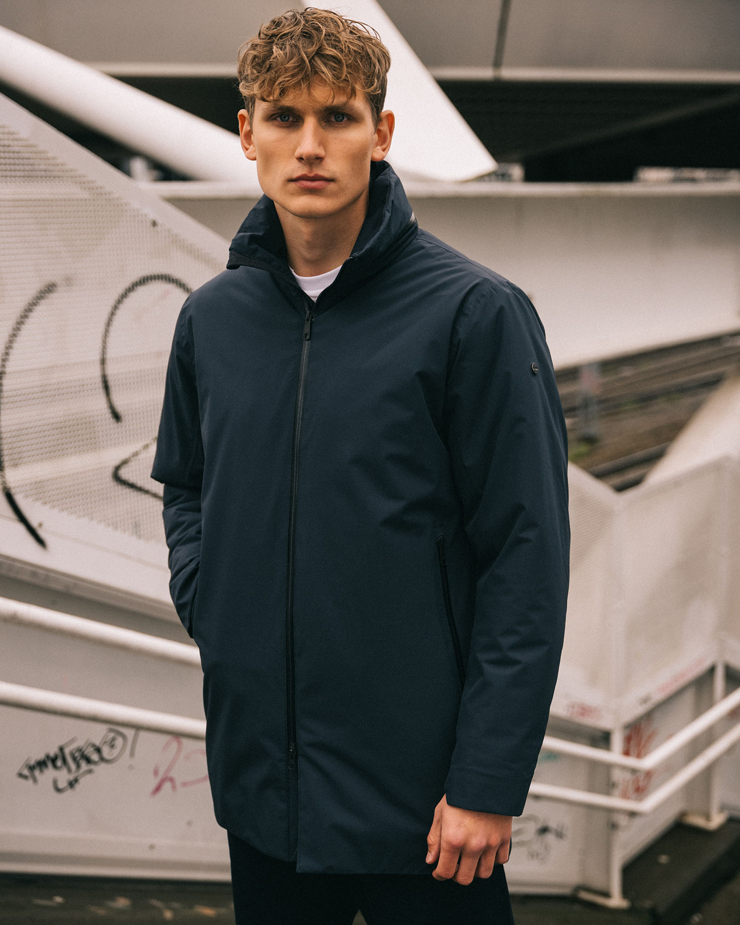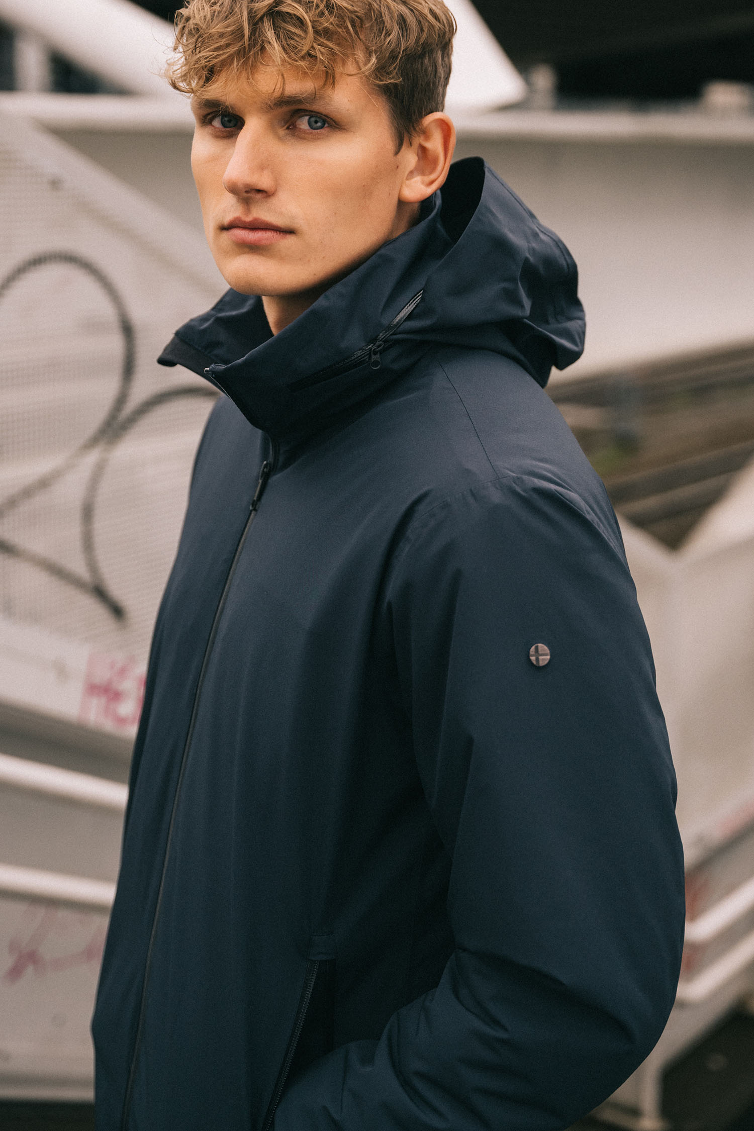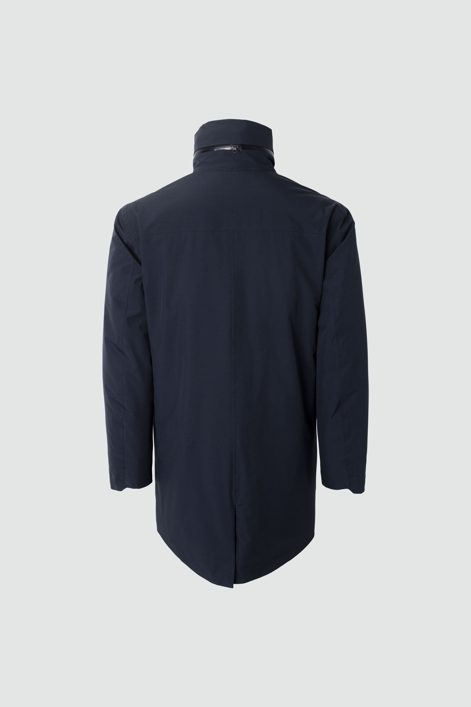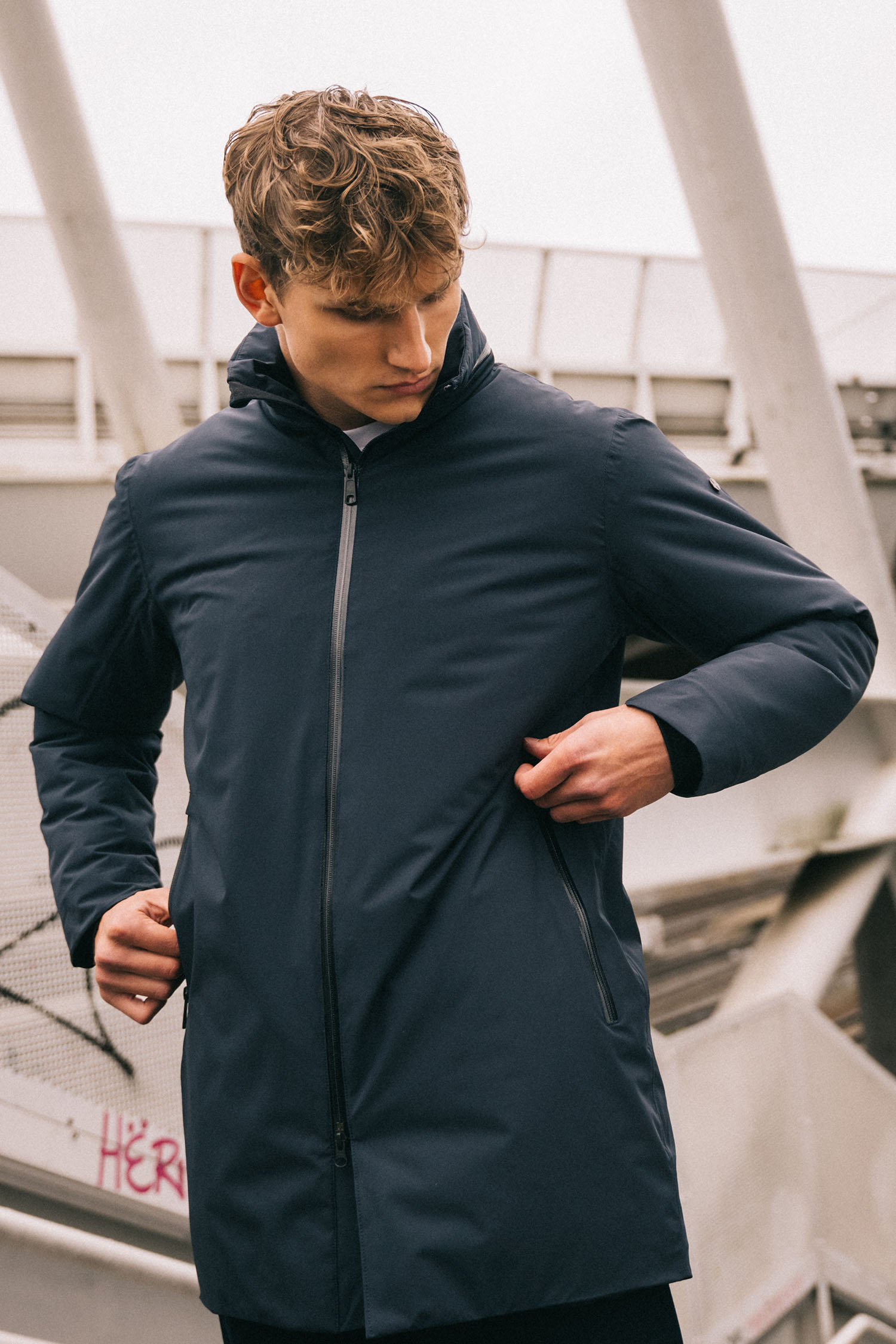 L.T. is a lightweight technical coat designed for a sleek, tailored silhouette, blending minimalist design with exceptional functionality. This versatile coat is ideal for both formal and casual settings, providing reliable protection and style. L.T. features RDS-certified down insulation in the body, complemented by Thinsulate synthetic insulation in the collar and sleeves for enhanced comfort and warmth.