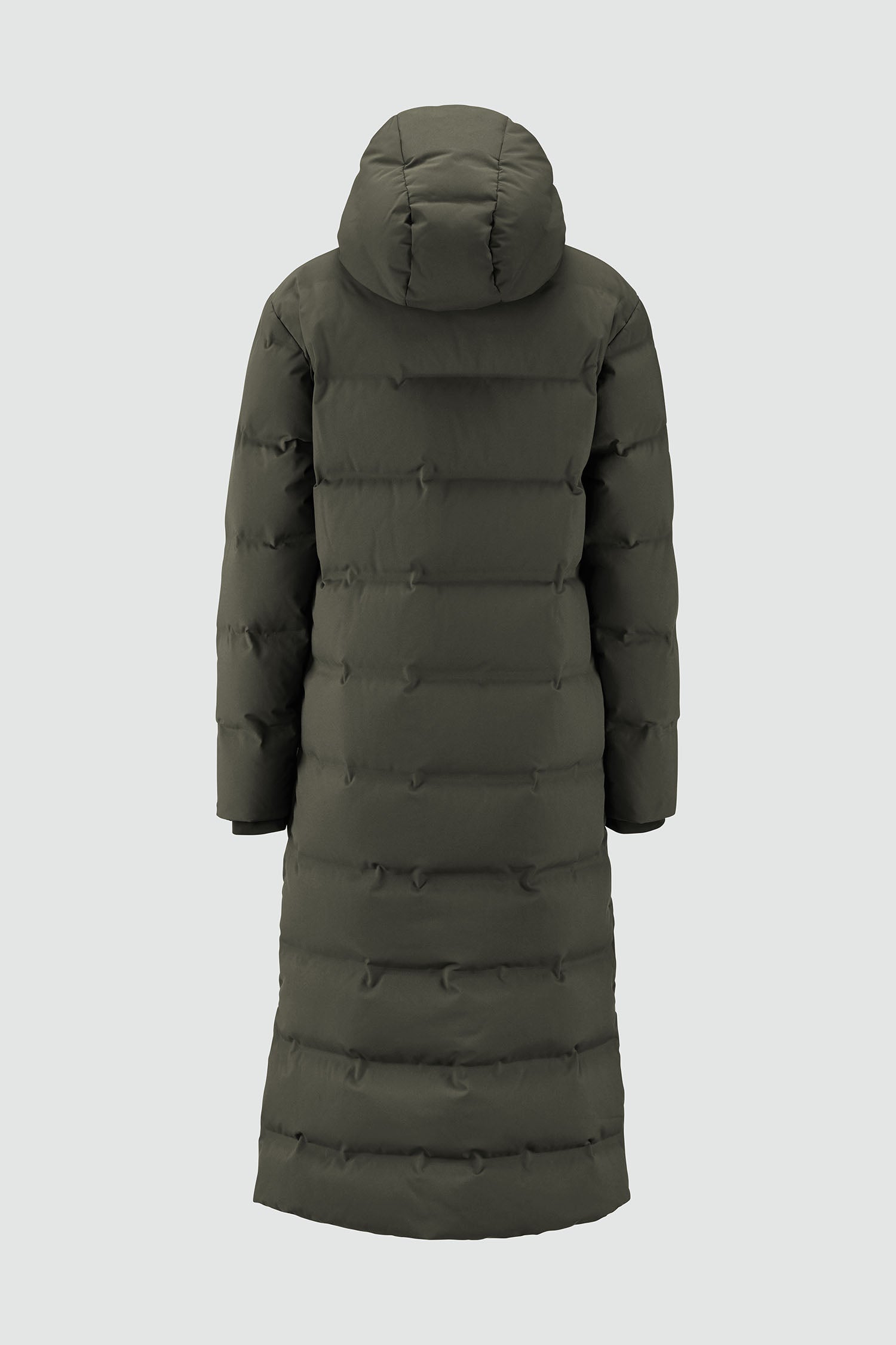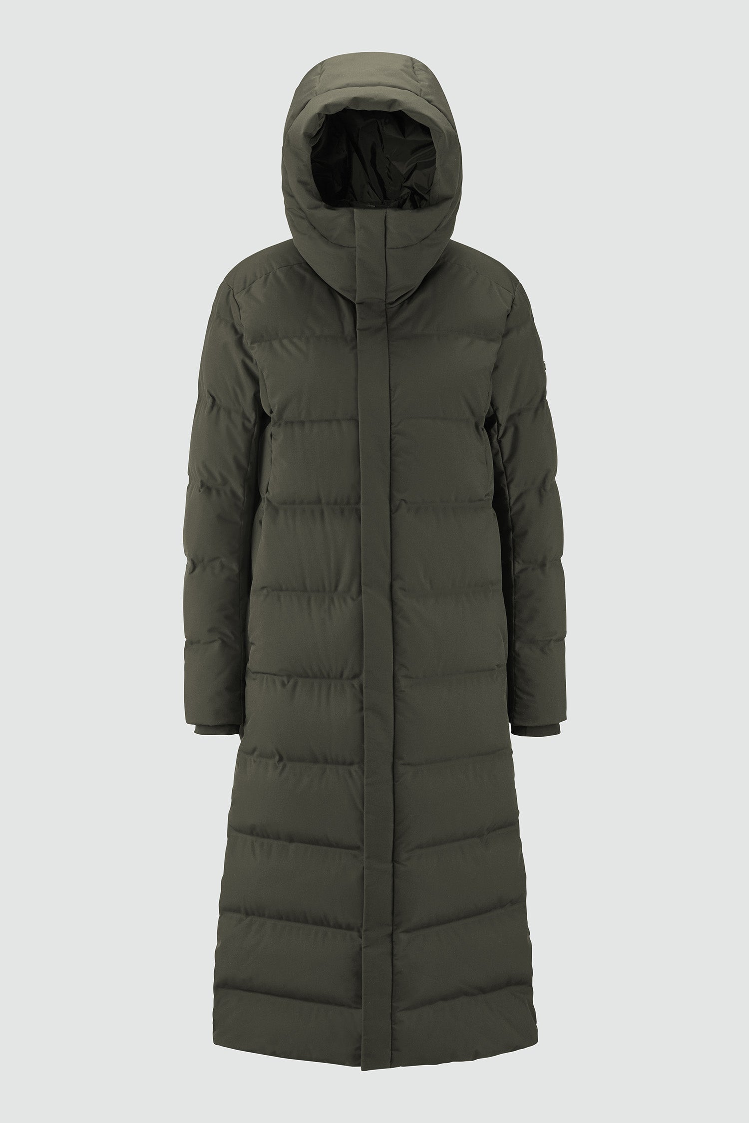The Meridian coat combines long, elegant design with high-performance insulation, offering a perfect balance of style and warmth for the colder seasons. Featuring a slim silhouette and filled with 90/10 RDS-certified down, Meridian provides a plush, puffed look while maintaining exceptional warmth. Despite its length, the coat is lightweight, weighing just 1080 grams in size Small, making it one of our best-selling women's styles due to its remarkable weight-to-warmth ratio and luxurious comfort.