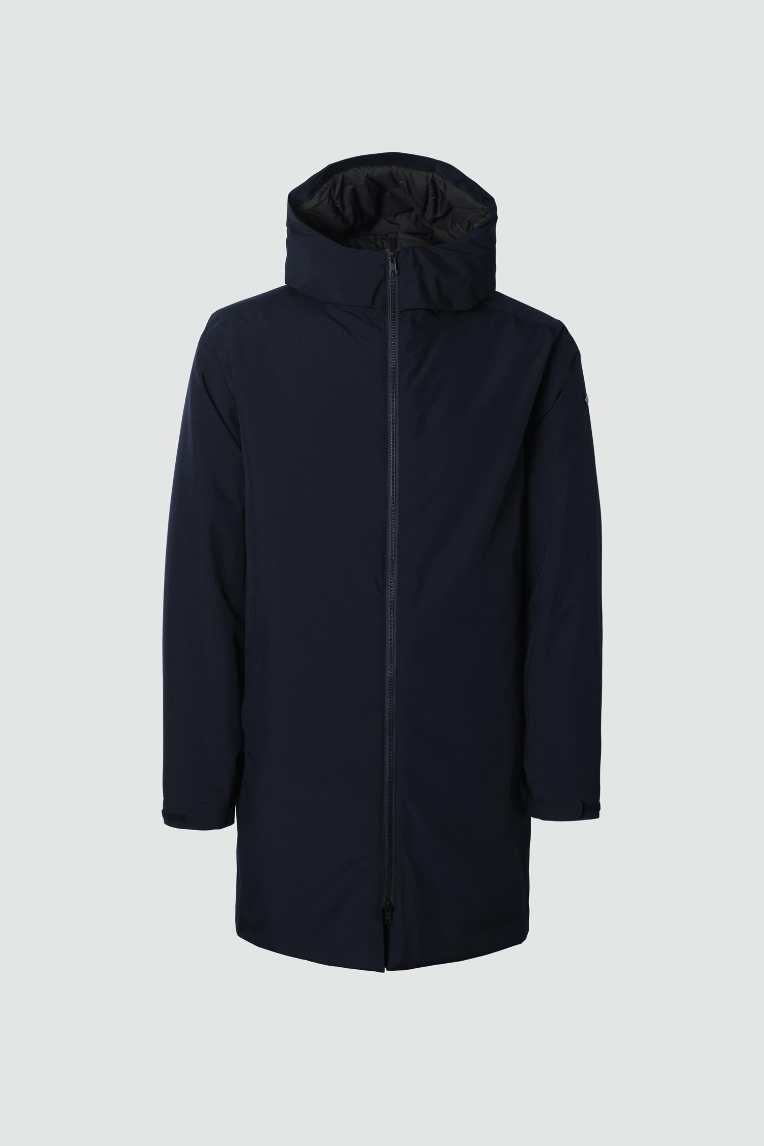 Nimbus Long is a Fitted jacket, meaning that it is designed to follow the body's natural lines without tapering. Fitted is a versatile shape that feels slightly narrower than a regular fit but with more room than a slim fit.