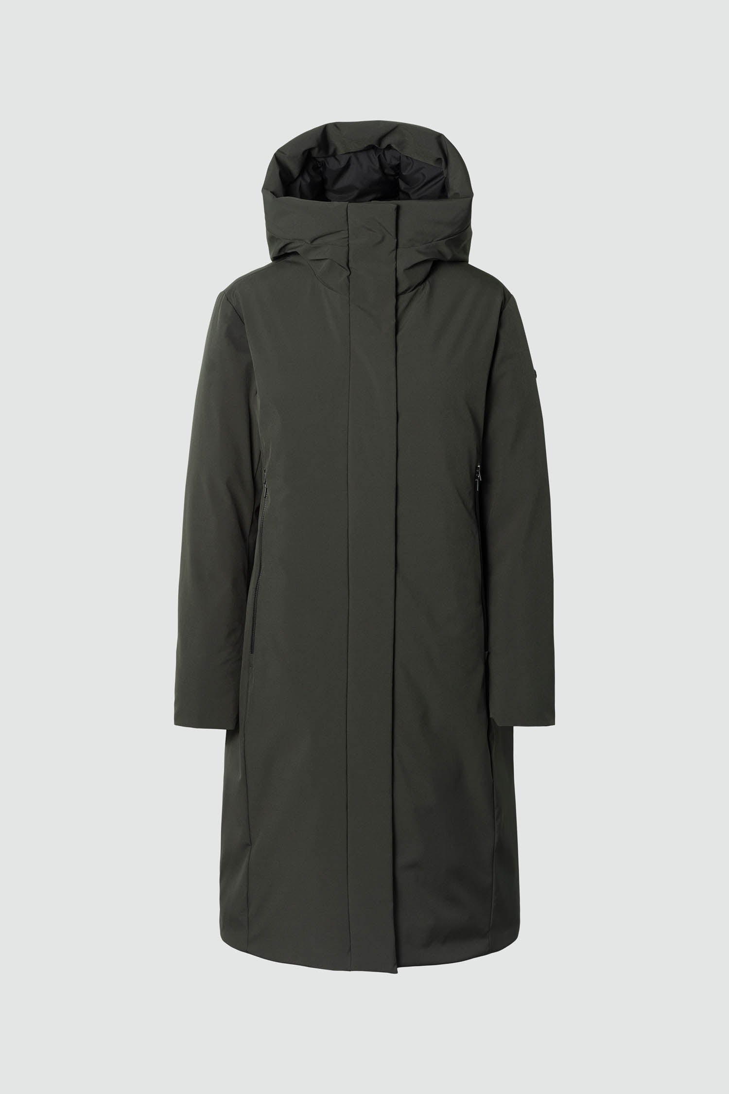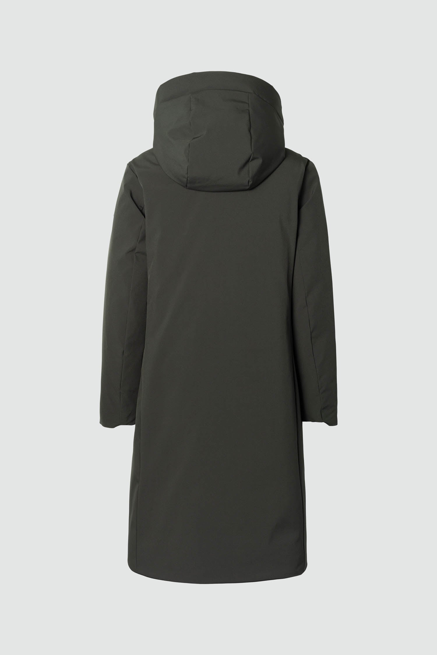 Path is a long, modern statement piece made for exploration. Fully padded with down and built with taped-seam weather protection, it offers reliable warmth and coverage in cold, wet conditions. Functional zip pockets secure essentials, while a hanging hood adds easy, protective comfort. Whether navigating city streets or venturing further out, Path is ready for new ground. Insulated with 90/10 RDS-certified down at 750+ fill power.