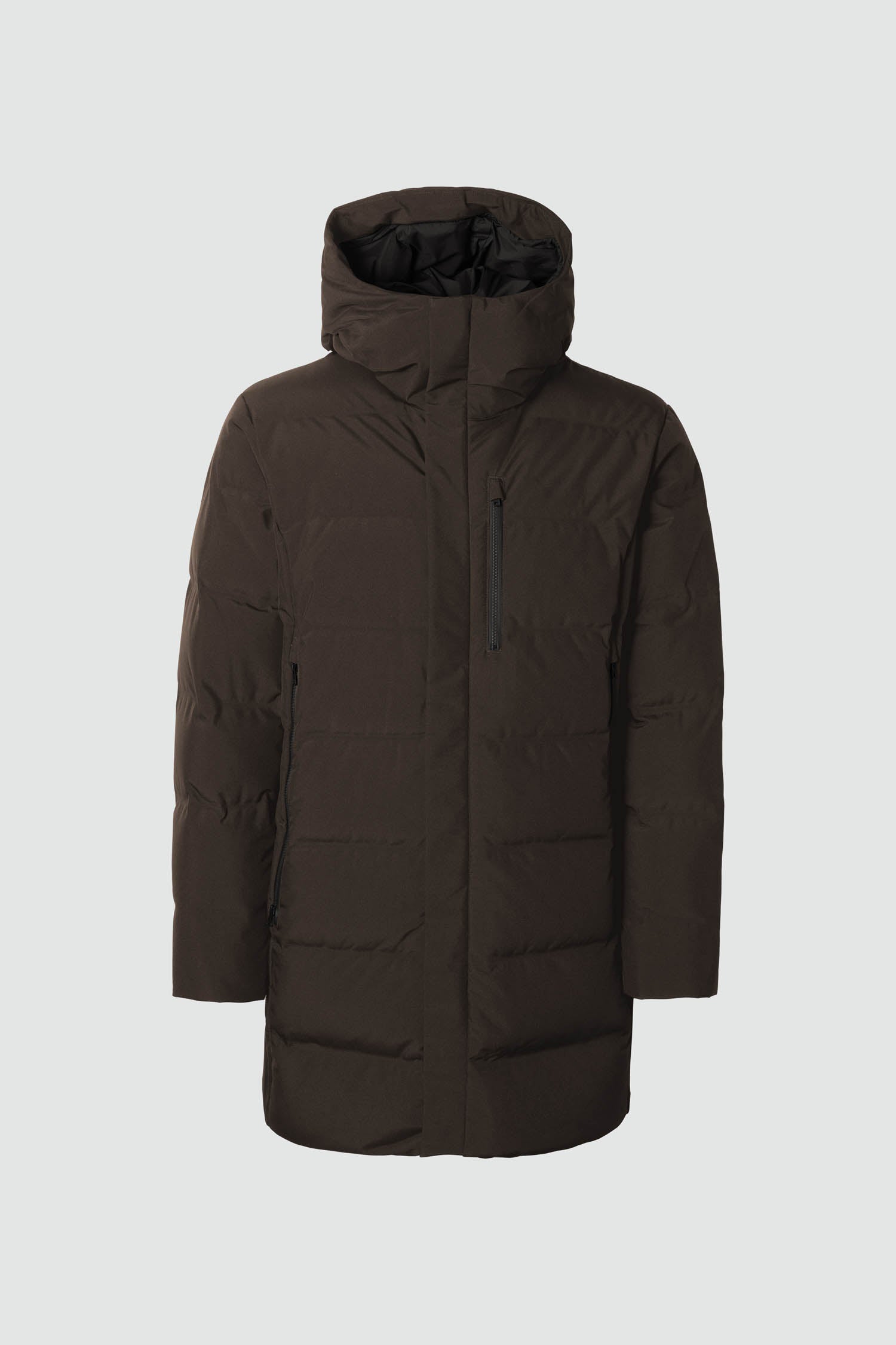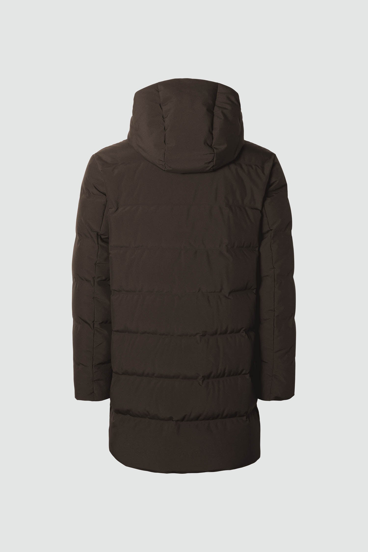 Radian is a Fitted coat, meaning that it is designed to follow the body's natural lines without tapering. Fitted is a versatile shape that feels slightly narrower than a regular fit but with more room than a slim fit.