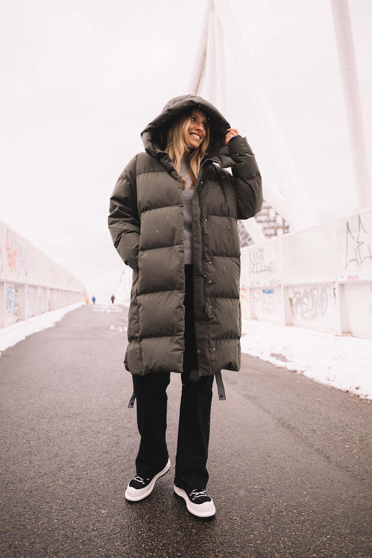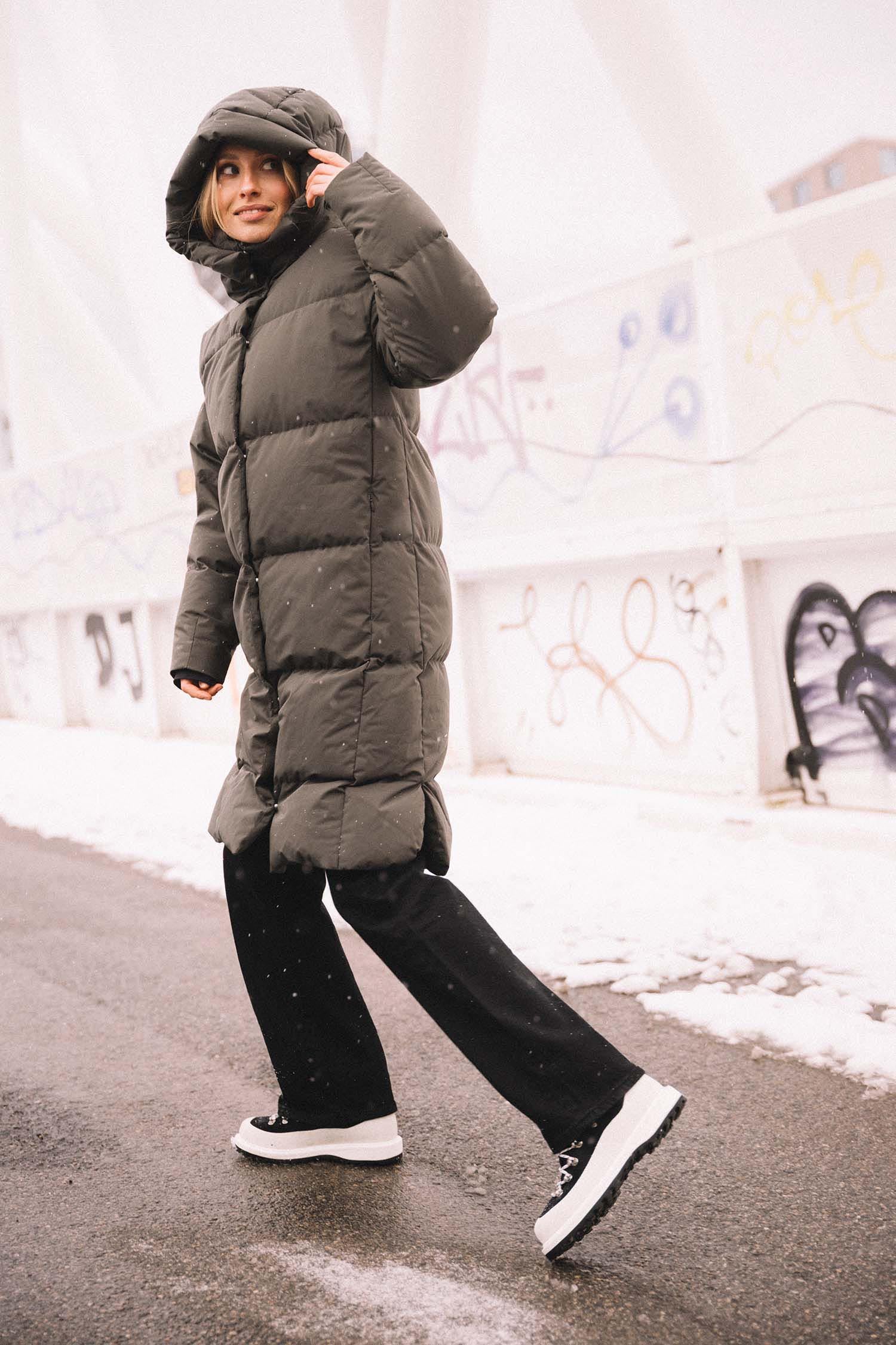 The oversized fit with a high collar and fixed hood ensures you stay warm and comfortable while bringing a distinct cool, relaxed look, easy to combine with several layers underneath.