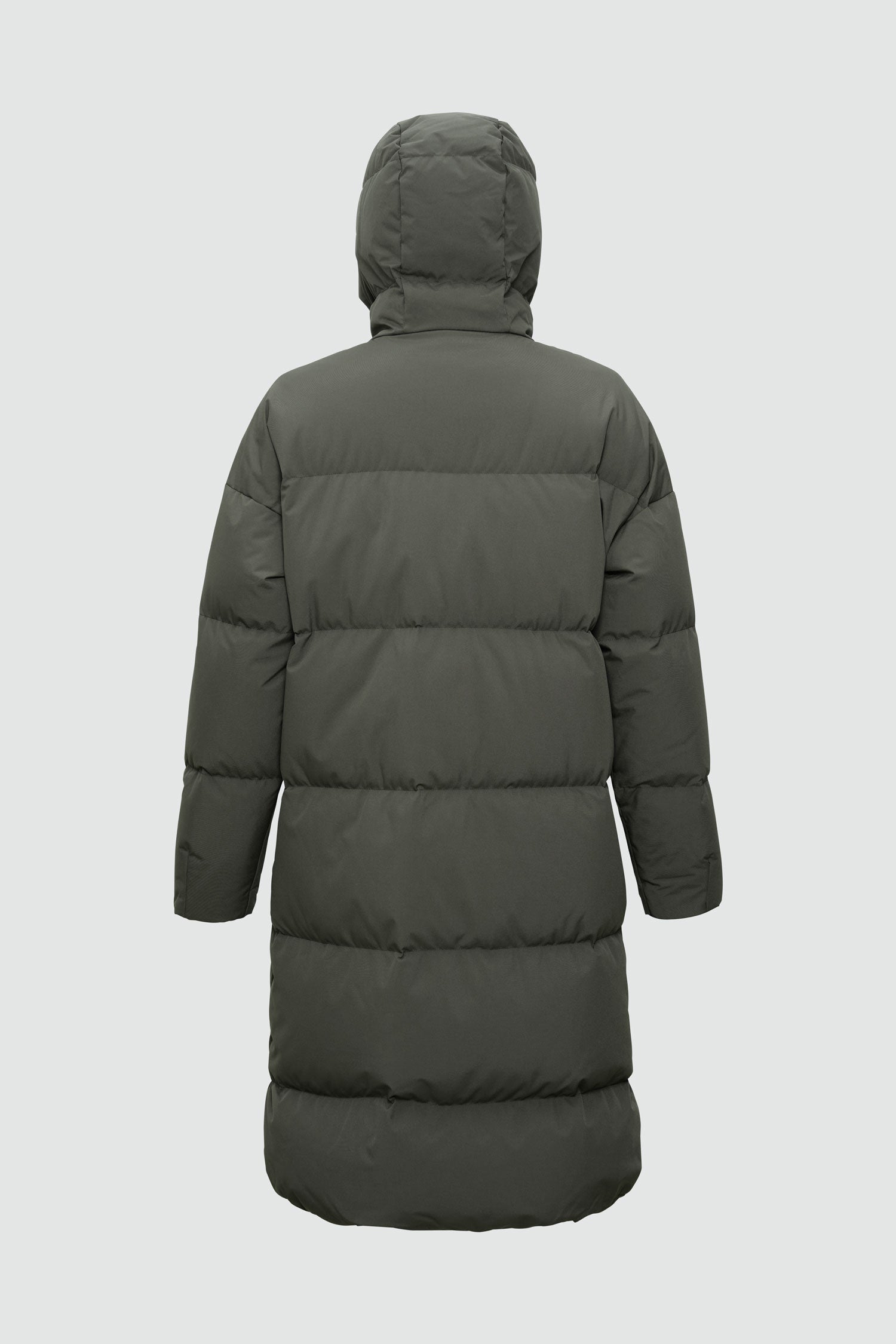 This coat is insulated with 90% down and 10% feathers for a perfect puffed feeling, look, and warmth. Responsible Down Standard (RDS) certifies products that contain feathers and down from certified farms. It ensures that the feathers and the duvet used in the padded products derive from geese and ducks raised in compliance with animal welfare principles and criteria.
