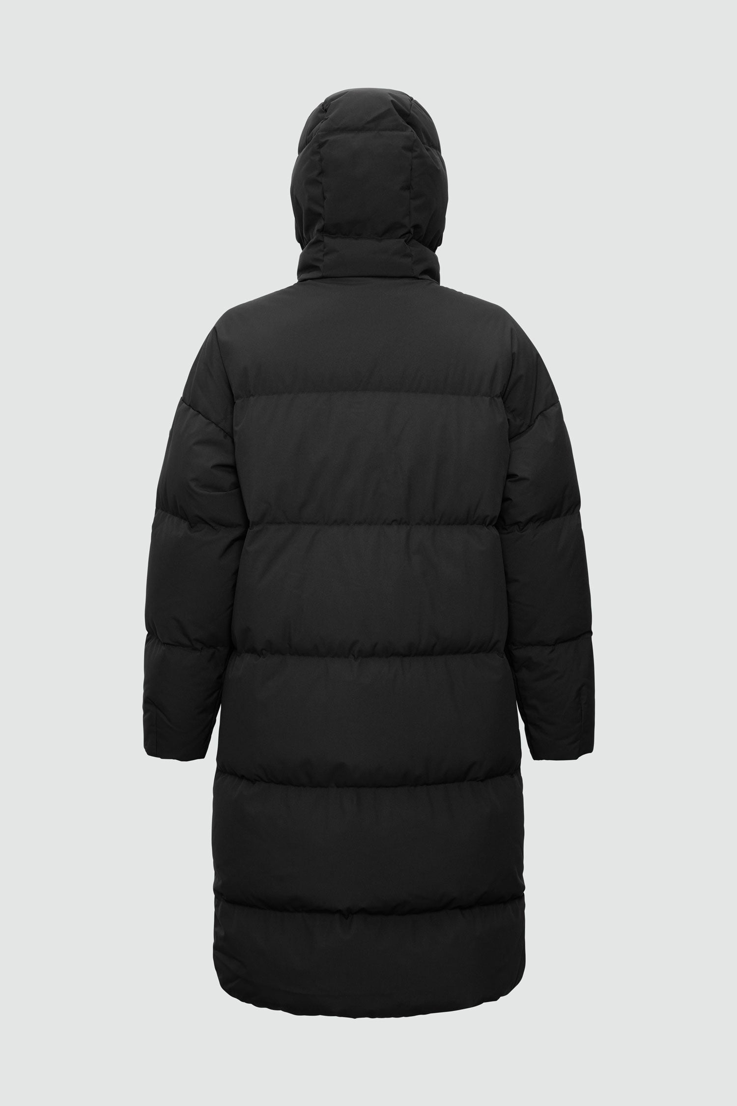 The Swell IIl coat combines warmth, comfort, and a distinct, relaxed style with its oversized fit and high collar with a fixed hood. Embracing slouch and volume, this coat features drop-shoulder styling and minimal texture for a modern, laid-back look. Side splits with rounded corners add extra flair and movability, making Swell II a versatile piece that adapts to various weather conditions and layering needs. Despite its long length, the coat remains ultra-light, weighing only 980 grams in size Small.
