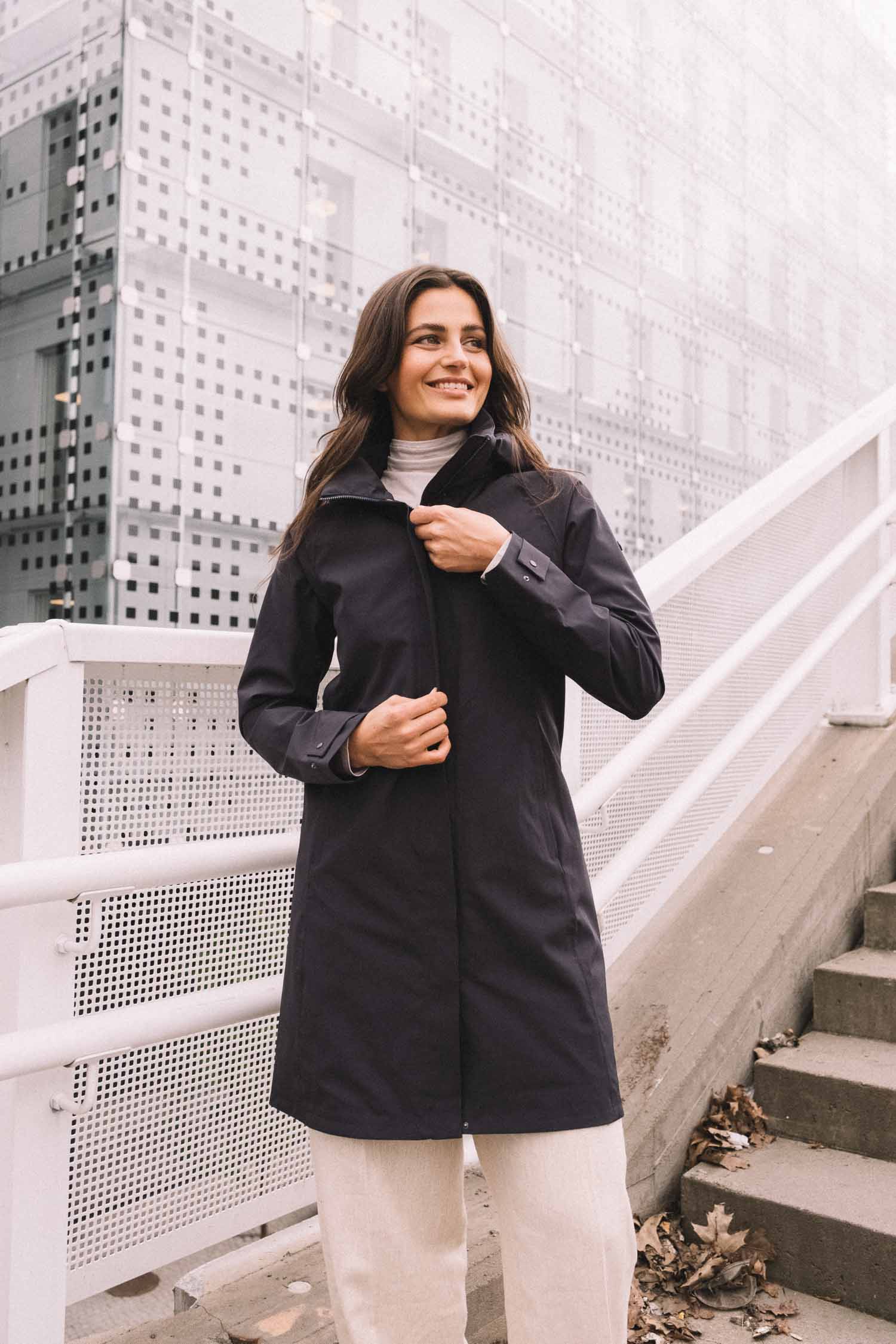 Tender III is a sophisticated urban coat, now enhanced with an updated hood construction for improved protection against the elements. Designed with a fitted silhouette, this elegant city coat offers a balance of modern tailoring and functional performance, making it a versatile choice for all seasons.