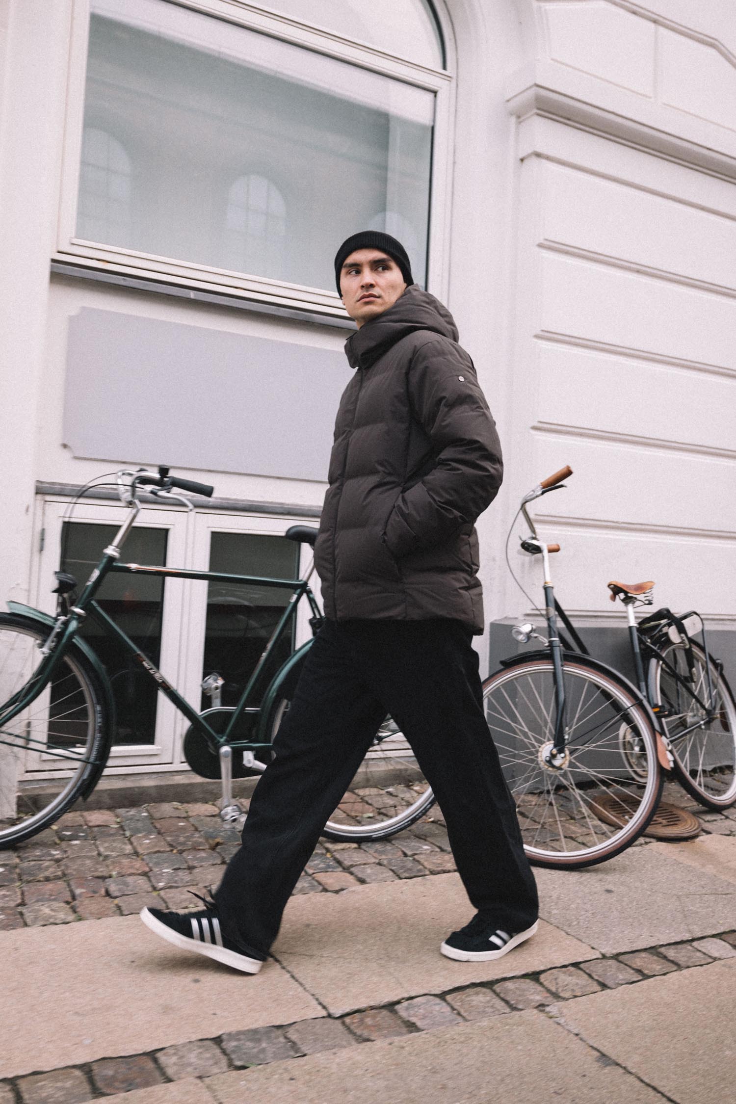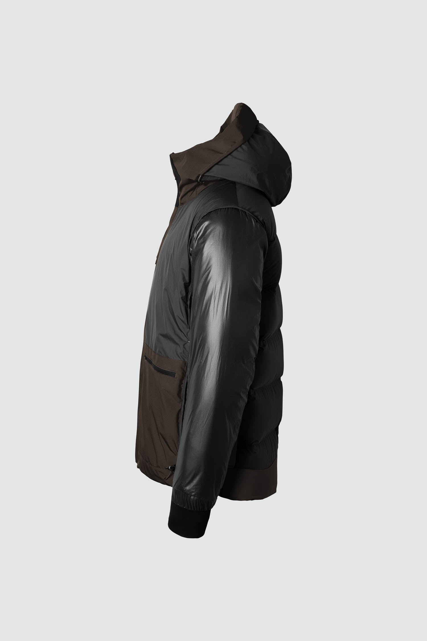 Its streamlined construction and welded down channels prevent cold spots, enhance durability, and create a sleek silhouette without unnecessary bulk. Wind- and water-resistant fabric, a waterproof YKK zipper, and zippered waist pockets provide reliable protection and function.