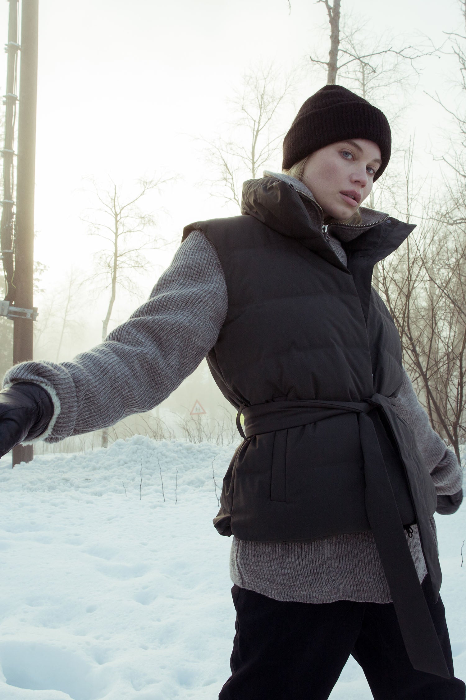 This coat is insulated with 90% down and 10% feathers for a perfect puffed feeling, look, and warmth. Responsible Down Standard (RDS) certifies products that contain feathers and down from certified farms. It ensures that the feathers and the duvet used in the padded products derive from geese and ducks raised in compliance with animal welfare principles and criteria.